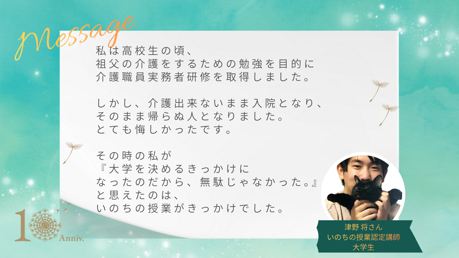 介護職員実務者研修を取得し、自ら「いのちの授業」の認定講師にもなりました。