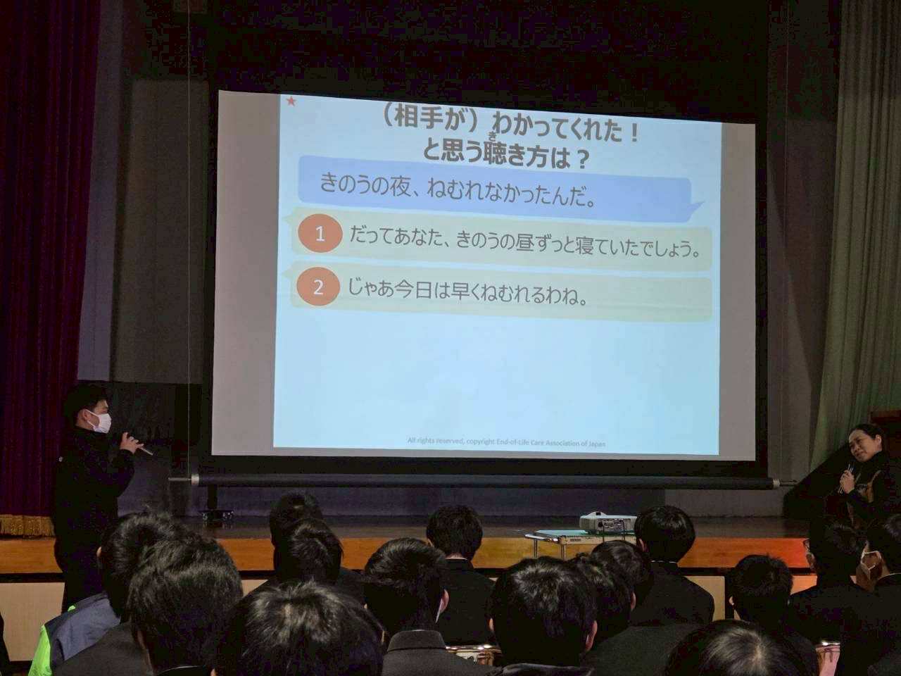 | 参加者からのコメント | ・折れない心を作るために自分にとっての「心を支える存在」が必要なんだと感じました。自分にとってのわかってくれる人、聴いてくれる人の存在は大切にしていきたいと思いました。また、今回教えていただいた「反復」や「沈黙」などをこれからの生活に役立てていきたいと思いました。そして、希望と現実の開きが少しでも狭くなるように、選ぶことの自由が増えていくように、自分でしっかり努力していこうと思いました。 ・ワークシートに支えとなる関係を書くとき、5つでてきました。こんなに私のことを支えてくれる人がいるんだなって思うとなんかうれしくなりました。困っている友達や一人でしんどい思いをしているときにかける言葉の一つ一つが大切なのもわかりました。これからは、何も聞かずにただ「分かるよ」ではなくて、相手の気持ちを反復しながら、ゆっくりと時間をかけて相手の話を聞きます! ・現実と希望の開きが苦しみであるというお話からとても引き込まれました。そして苦しみは解決しなければならないと思ったり、いつになったらなくなるのかと考えたりすることがありましたが、そうではなくて、苦しみを抱えながら穏やかに生きる道があるというのは新たな発見でした。肱東中学校中の教育目標に「未来をしなやかに生き抜く生徒を育てる」とあるのですが、穏やかに生きることは、“しなやかに生きること”ではないかと思いました。最近、失敗が多い自分や目標を見つけられない自分を否定しがちでしたが、本日のお話を聞いて、自分の存在を認めてあげることを忘れないでおくべきだと思いました。たくさんの気付きをありがとうございました。(教員) |