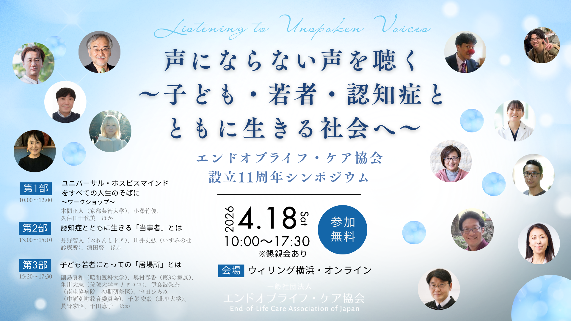 エンドオブライフ・ケア協会設立11周年シンポジウム:声にならない声を聴く ~子ども・若者・認知症とともに生きる社会へ~